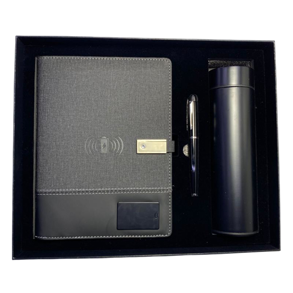 COFFRET BLOC NOTE + GOURDE THERMOS + PORTE CLE +STYLO DE LUX