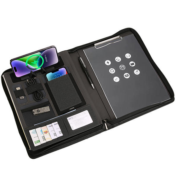 Conférencier élégant présenté dans un coffret raffiné, idéal pour offrir ou pour un usage professionnel. Conçu pour organiser efficacement documents, cartes, stylo et autres accessoires indispensables lors de réunions ou déplacements. Allie praticité et présentation soignée, parfait pour un usage professionnel, académique ou comme cadeau d’affaires.