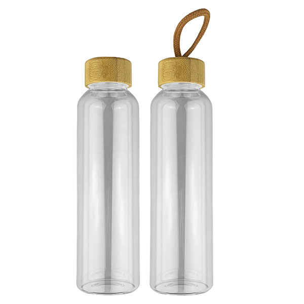 Gourde en verre couvercle en bois 600ml BT23